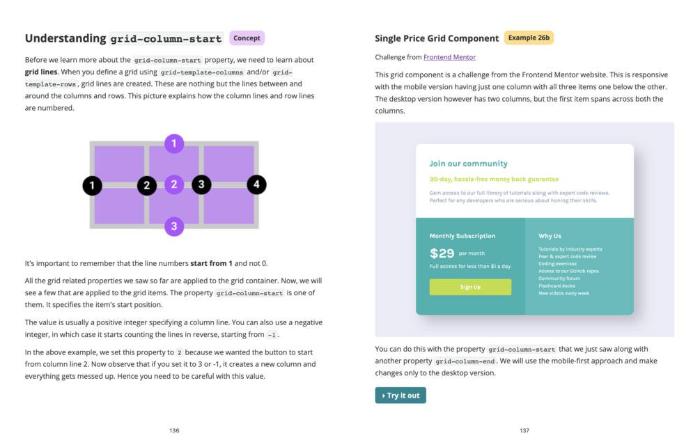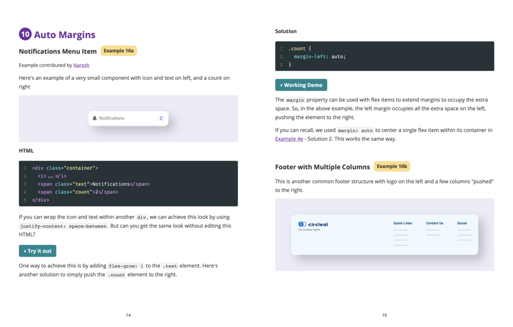 This book takes a completely different approach. I won't teach you the things flex and grid can do. Instead, I will first show you some components and layouts and make you think how to build them using the CSS concepts you already know. Now you have a problem, and you want a solution. That's when I introduce the concepts you "need" to know.